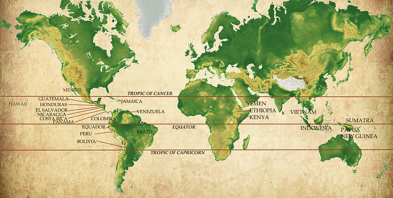 Người ta tin rằng tỉnh Kaffa của Ethiopia chính là vùng đất khởi nguyên của cây cà phê. Từ thế kỷ 9 người ta đã nói đến loại cây này ở đây. Vào thế kỷ 14 những người buôn nô lệ đã mang cà phê từ Ethiopia sang vùng Ả-Rập. Nhưng tới tận giữa thế kỷ 15 người ta mới biết rang hạt cà phê lên và sử dụng nó làm đồ uống. Vùng Ả-Rập chính là nơi trồng cà phê độc quyền. Trung tâm giao dịch cà phê là thành phố cảng Mocha, hay còn được gọi là Mokka, tức là thành phố Al Mukha thuộc Yemen ngày nay.